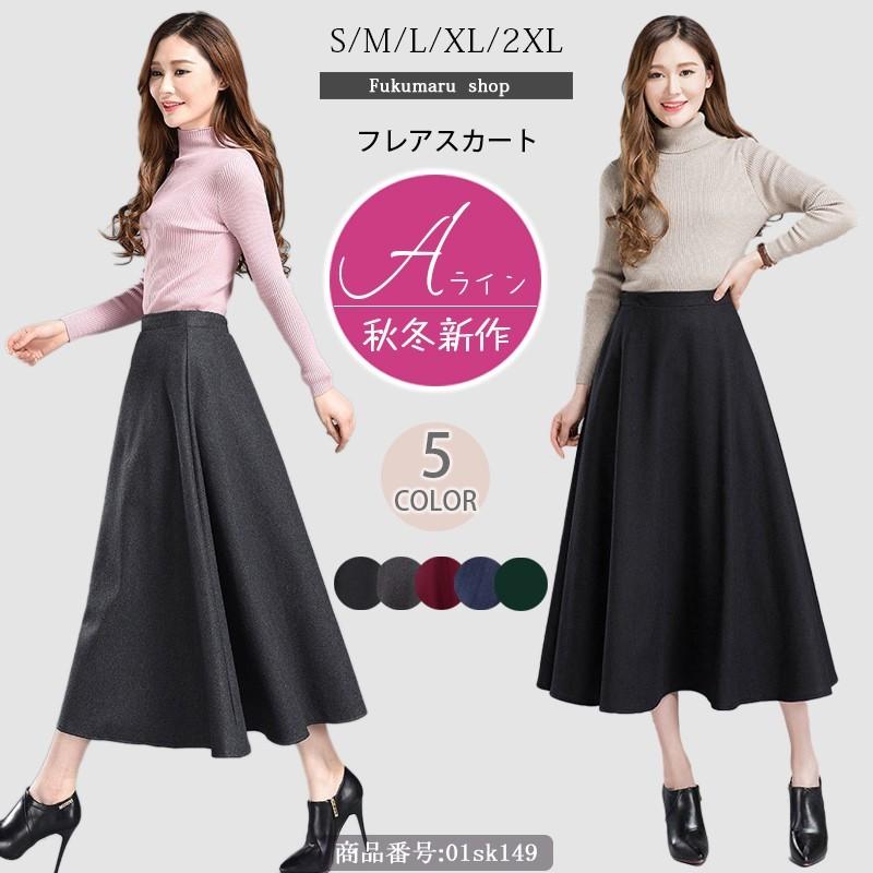 スカート ボトムス 冬 ロングスカート ミモレ丈 マキシスカート レディース 秋冬 フレアスカート おしゃれ 黒 無地 01sk149 福丸 通販 Yahoo ショッピング